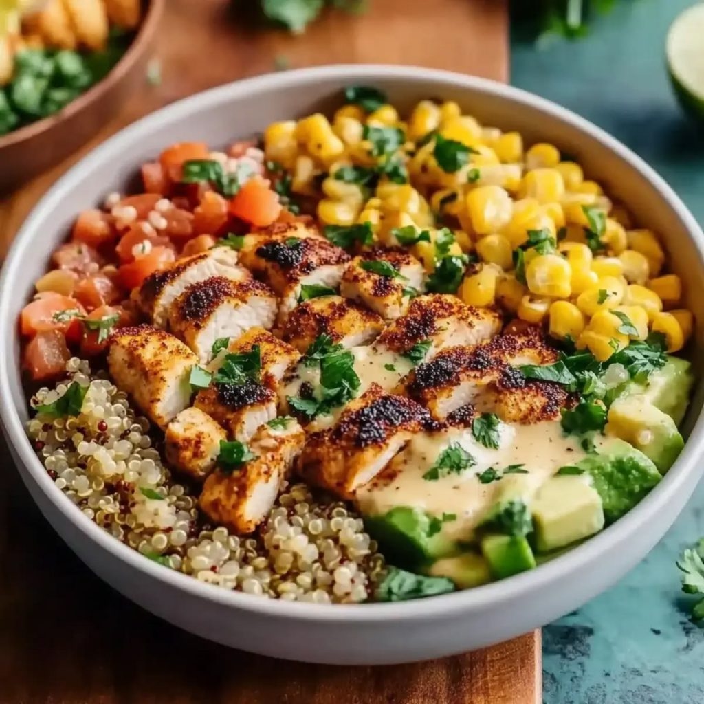 - Assemble your bowl by adding quinoa as the base, topping with grilled chicken and fresh vegetables, and finishing with a drizzle of dressing.